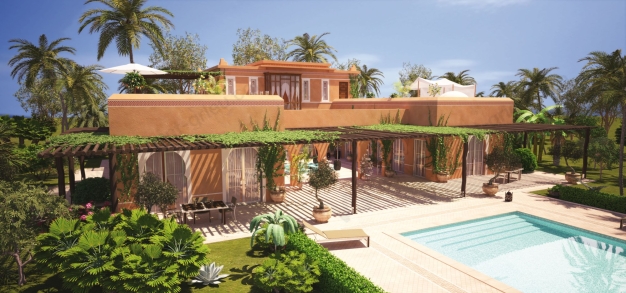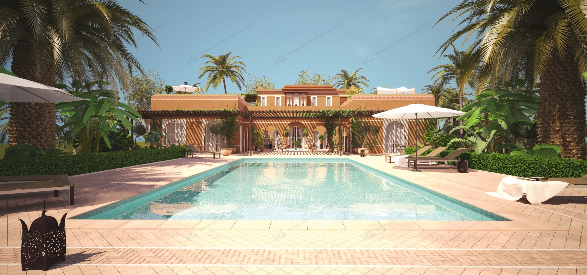 Réalisation d'une série d'illustrations d'ambiance pour un riad typique à marrakech, zélige, bejmat et menze ornent cette villa prestigieuse qu'il a fallu illustrer à différentes heures de la journée.